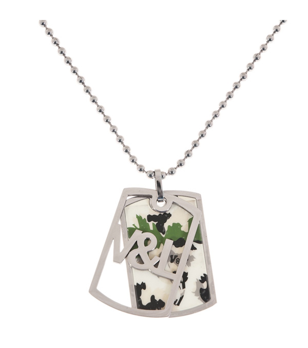 Colier elegant de damă cu un design unic al pandantivului, care are o formă geometrică. Lanțul are elemente rotunde mici și o încuietoare. Potrivit pentru ținute de zi cu zi sau formale.