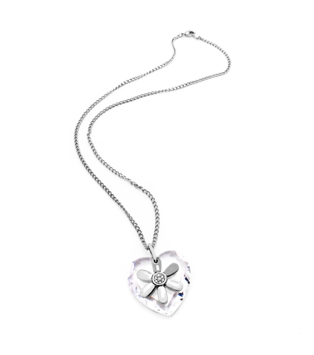 Colier elegant cu lanț subțire și pandantiv în formă de inimă. Pandantivul este decorat cu o floare în centru, care adaugă un accent elegant designului.