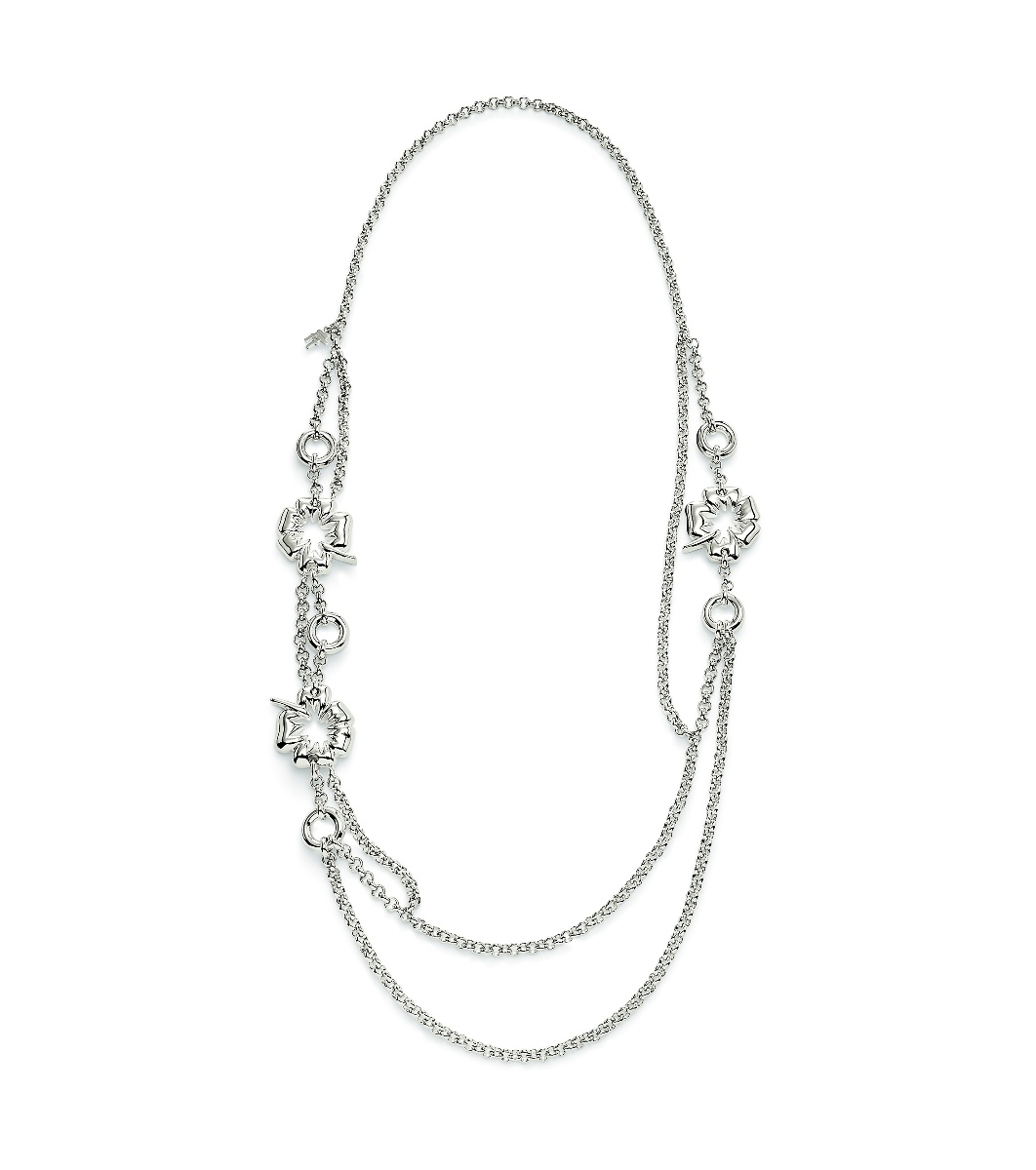 Colier cu multe elemente decorative și un design curat.