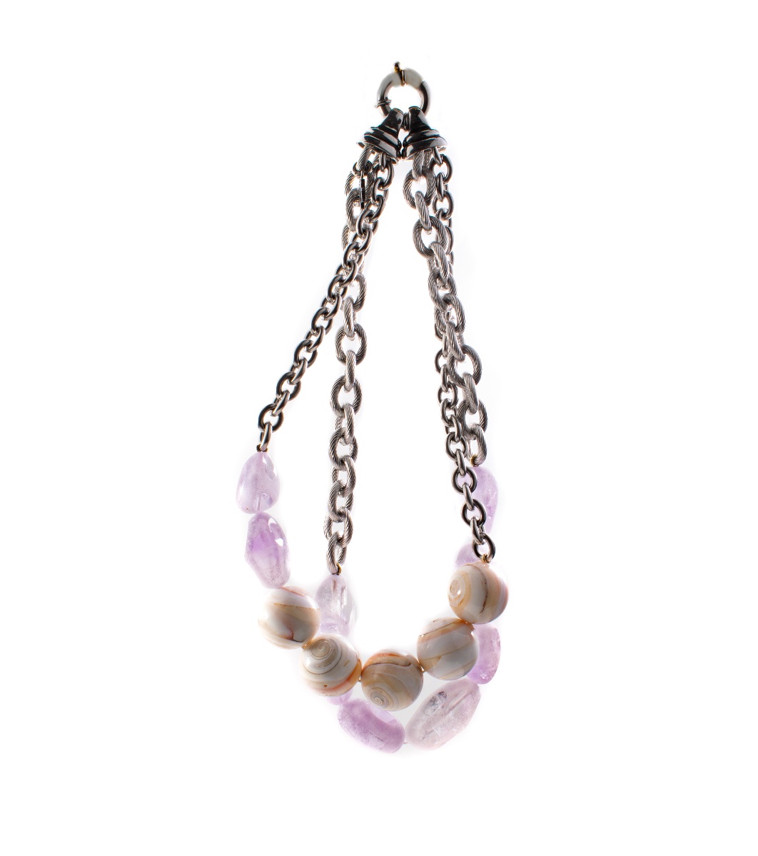 Colier elegant de damă cu lanț și mărgele ovale. Potrivit pentru diverse ocazii.