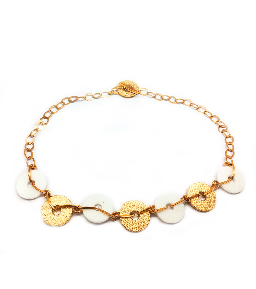 Colier elegant de damă cu discuri alternante, creând un efect vizual interesant.