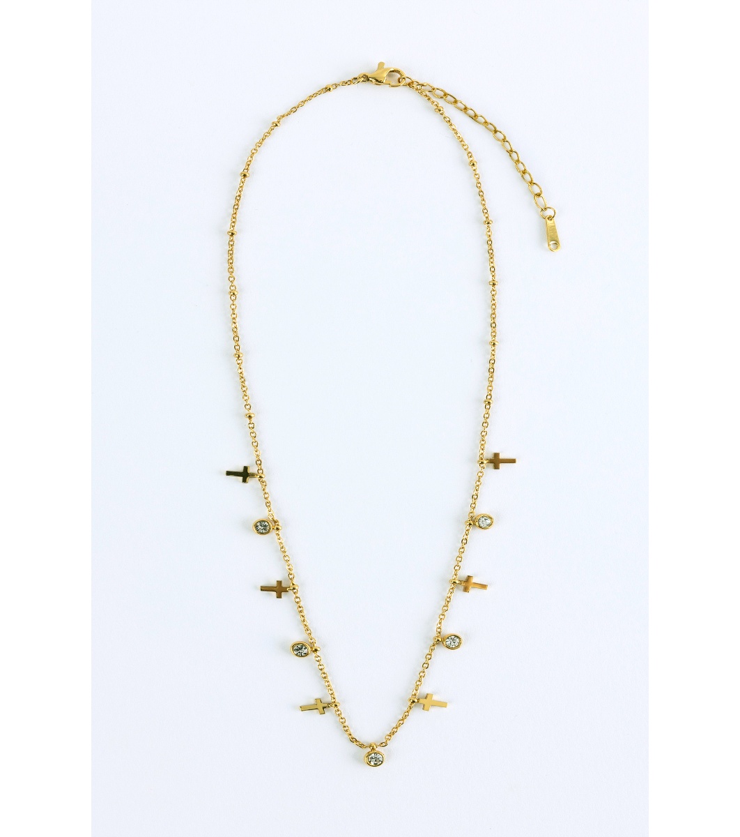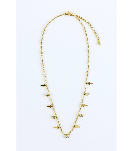 Colier de damă din aur, realizat din oțel inoxidabil, cu cruci și pietre transparente