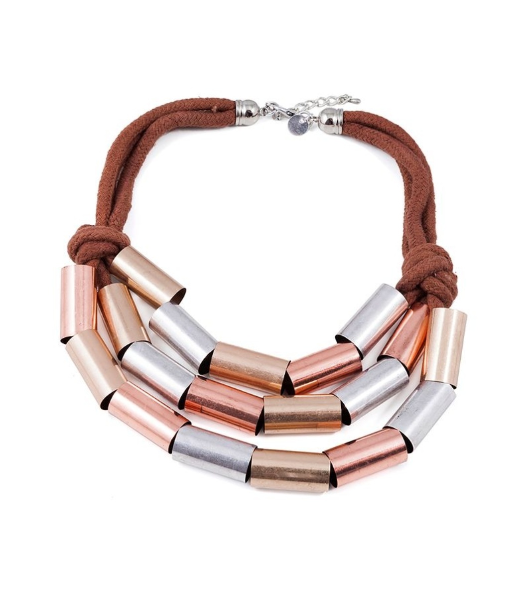 Sidartha Colier de damă din aur roz, argint și aur Colier original cu șnururi triple maro
