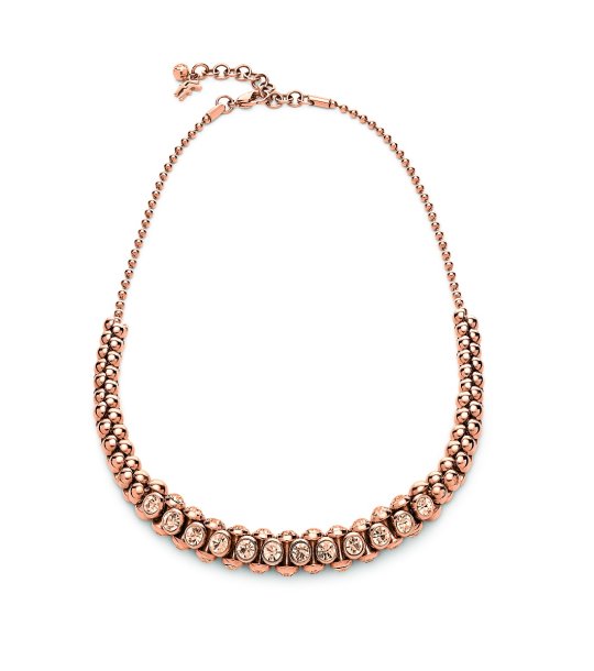Colier elegant de damă cu elemente moderne. Prezintă detalii sferice și încrustate alternante, care conferă un aspect sofisticat. Potrivit pentru ocazii speciale.