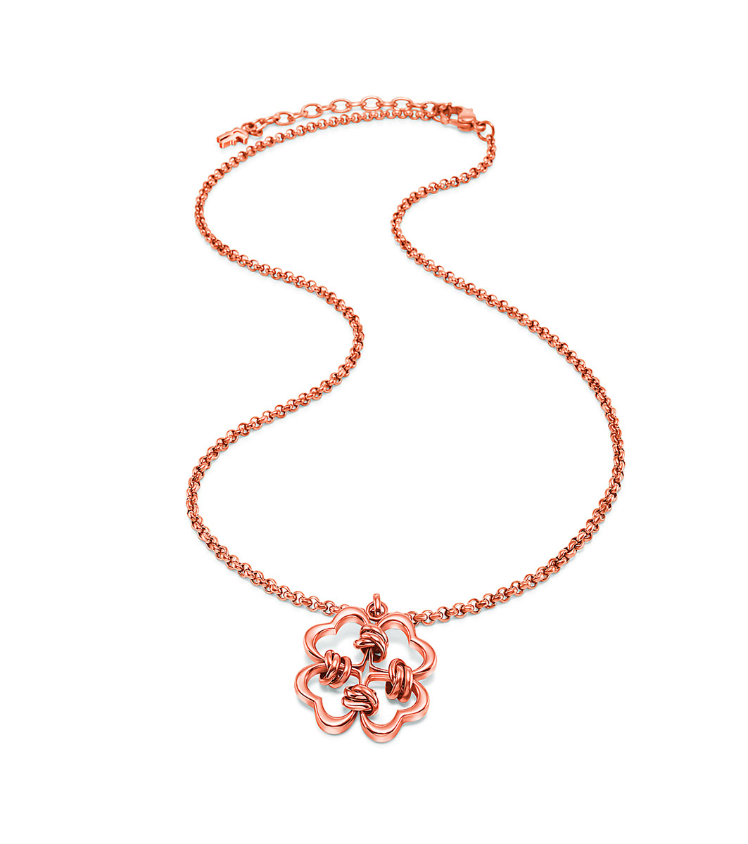 Folli Follie Colier de dama din aur roz cu trifoi Colier cu lant