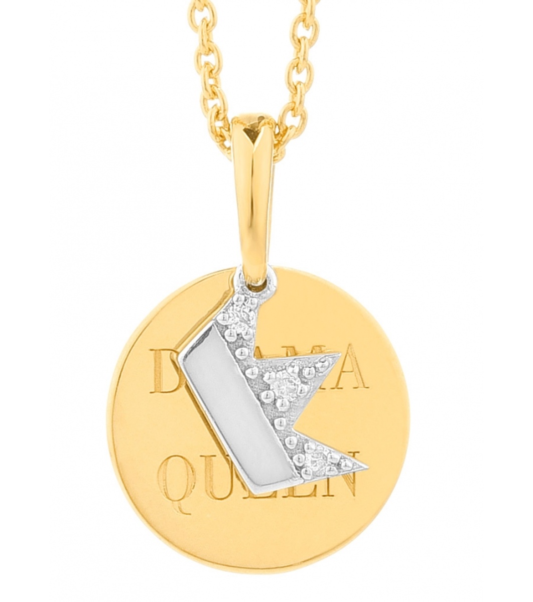 Colier de damă cu medalion rotund și pandantiv decupat.