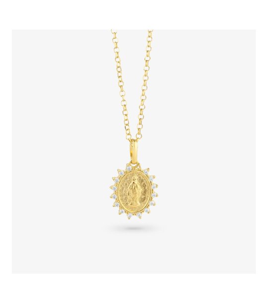 Pandant elegant pentru femei cu o figură reprezentată. Este înconjurat de elemente decorative și este atârnat pe un lanț fin. Închizătoarea este cu carabină.