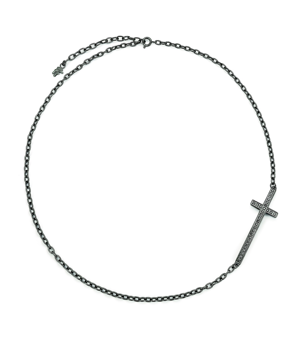 Colier elegant cu un lanț fin și o cruce decorativă. Închizătoarea este de tip carabină pentru o purtare sigură.