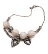 Colier cu mărgele decorative și pandantive metalice în formă de inimă.
