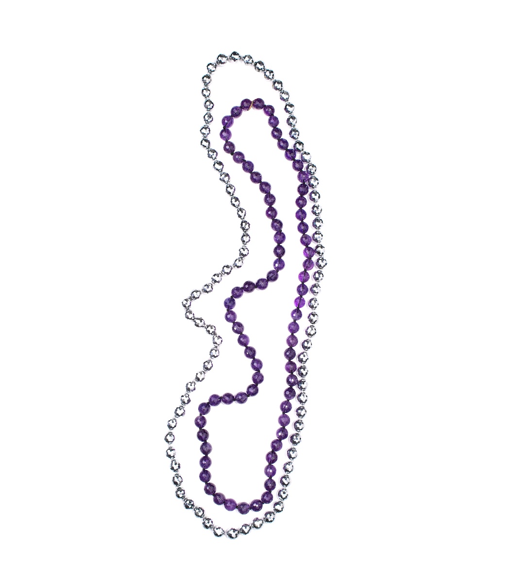 Colier lung cu mărgele rotunde alternante.