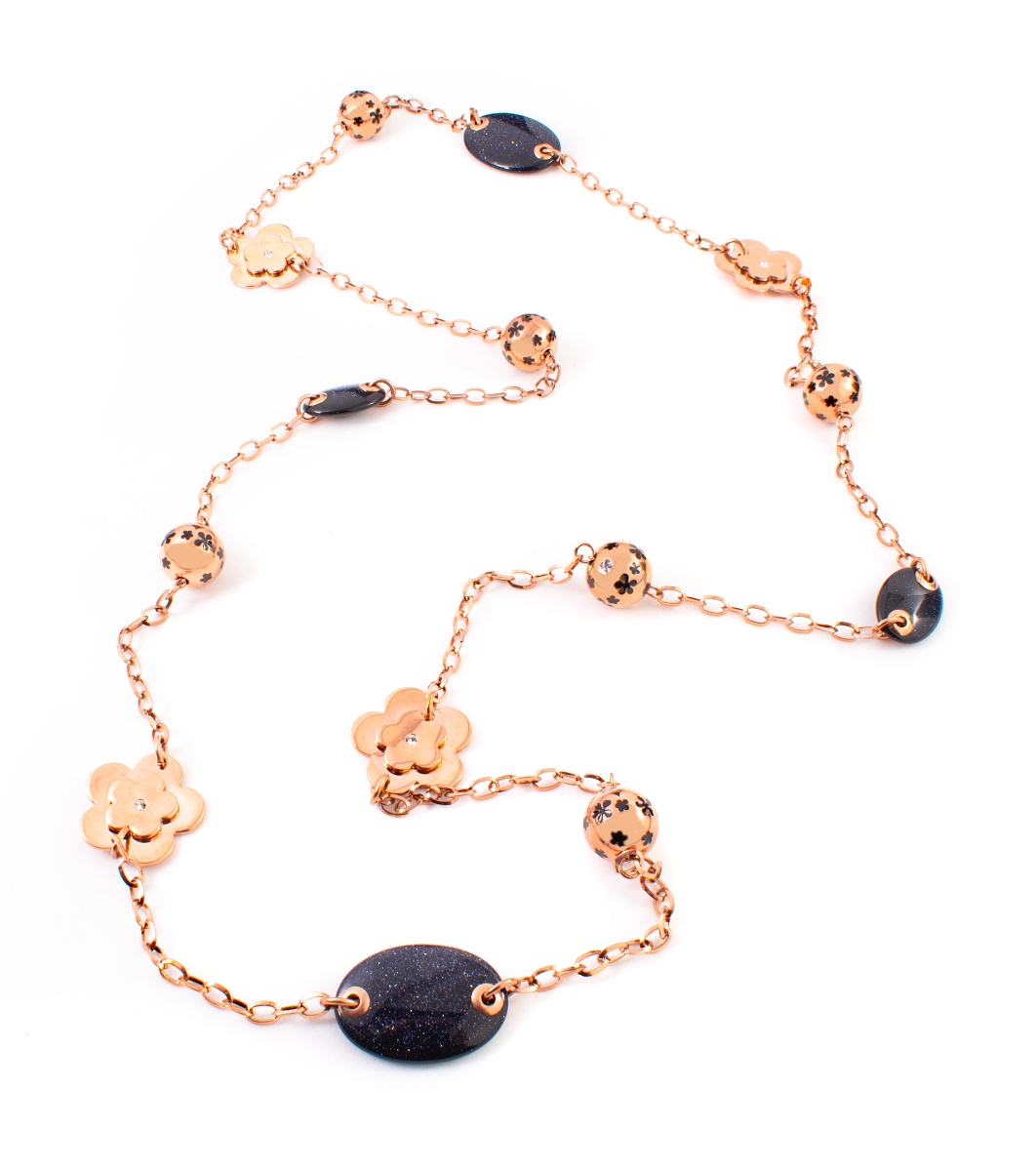 Un colier sofisticat pentru femei, cu o varietate de pandantive. Lungimea sa permite purtarea confortabilă și elegantă. Realizat cu atenție la detalii.