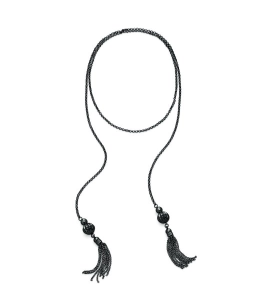 Colier lung cu un design elegant și doi ciucuri la capete. Potrivit pentru o varietate de stiluri.