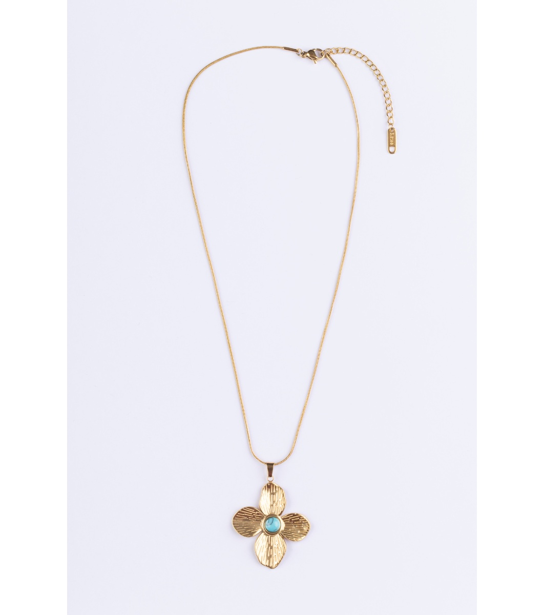 Colier placat cu aur pentru femei cu pandantiv turcoaz