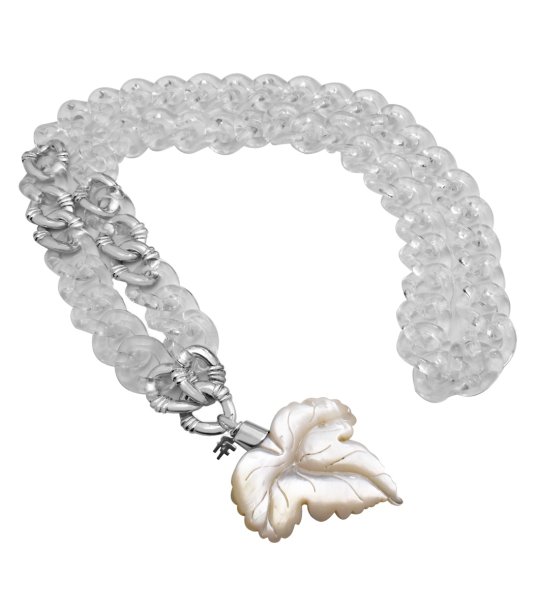 Un colier sofisticat pentru femei, cu o țesătură complexă și un pandantiv decorativ în formă de frunză. Potrivit pentru diverse ocazii, este un accesoriu ideal pentru a completa orice ținută.