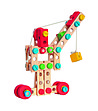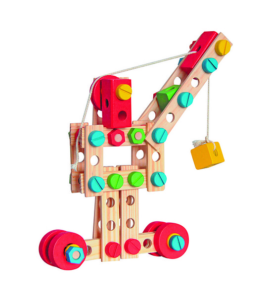 Constructorul conține 130 de piese - piulițe, șuruburi, șurubelniță, cheie, roți și șine cu 3, 4 și 6 găuri. Copilul își poate construi o macara, diverse cărucioare, motociclete sau altceva, folosindu-și imaginația. Jucăria vine într-o găleată convenabilă cu capac.