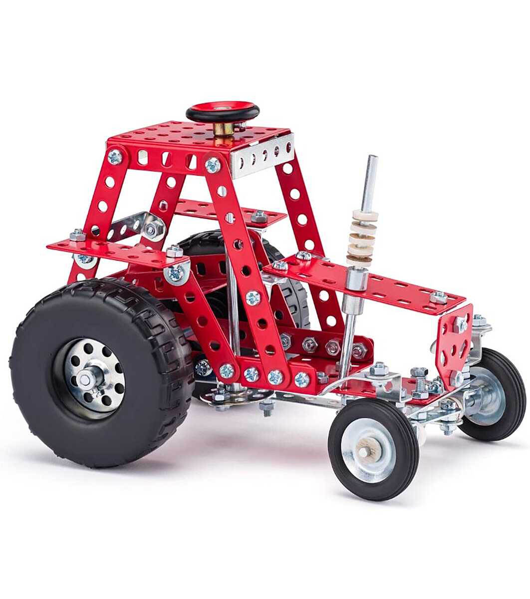Setul de constructii metalice Tractor cu volan si 208 piese va permite copilului sa asambleze un model cu care apoi sa se poata juca cu bucurie. Îl va ajuta să-și dezvolte abilitățile motorii fine, coordonarea, gândirea spațială și logică. El va învăța să asambleze folosind plăcile, șuruburile și piulițele incluse în kit. De asemenea, poate încerca să-și creeze propriile modele. Părțile constructorului sunt realizate din metal de înaltă calitate. Se fixează cu șuruburi și piulițe.