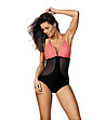 Costum de baie dintr-o singură piesă, negru și coral, cu plasă Priscilla