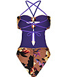 Costum de baie monokini maro, dintr-o singură piesă, cu imprimeu floral FLOWER MANIA