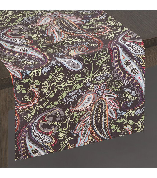 Eurofirany Covor de masă negru din catifea cu motiv paisley 35x180 cm Dimensiuni: 35x180 cm