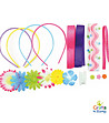 În set veți găsi: - 4 benzi potrivite pentru panglici; - 4 diademe; - șnur elastic; - flori pentru decor; - nasturi.
