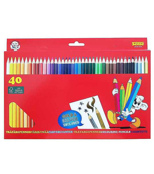 Sense Creioane colorate 40 buc. inclusiv aur și argint Set de 40 de creioane colorate (inclusiv 1 auriu și 1 argintiu) într-o cutie de carton.