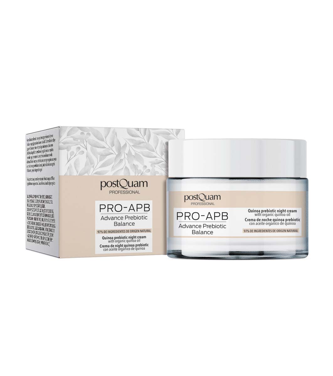 Postquam Cremă de față de noapte cu prebiotice 50 ml • O cremă hrănitoare special concepută pentru a profita de starea de repaus nocturn pentru a întări funcția de barieră a pielii datorită sucului de Yacon, care acționează ca un prebiotic pentru a ajuta la reglarea microbiotei normale a pielii și la menținerea microflorei benefice la niveluri optime.