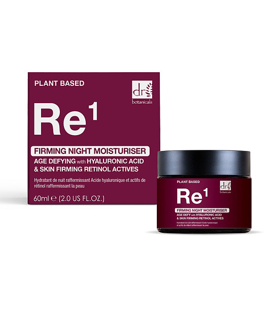 Dr Botanicals Cremă de față hidratantă pentru fermitate de noapte cu 1% acid hialuronic și ingrediente active de retinol 60 ml O cremă de față de noapte cu textură groasă, concepută pentru a fi aplicată înainte de culcare.