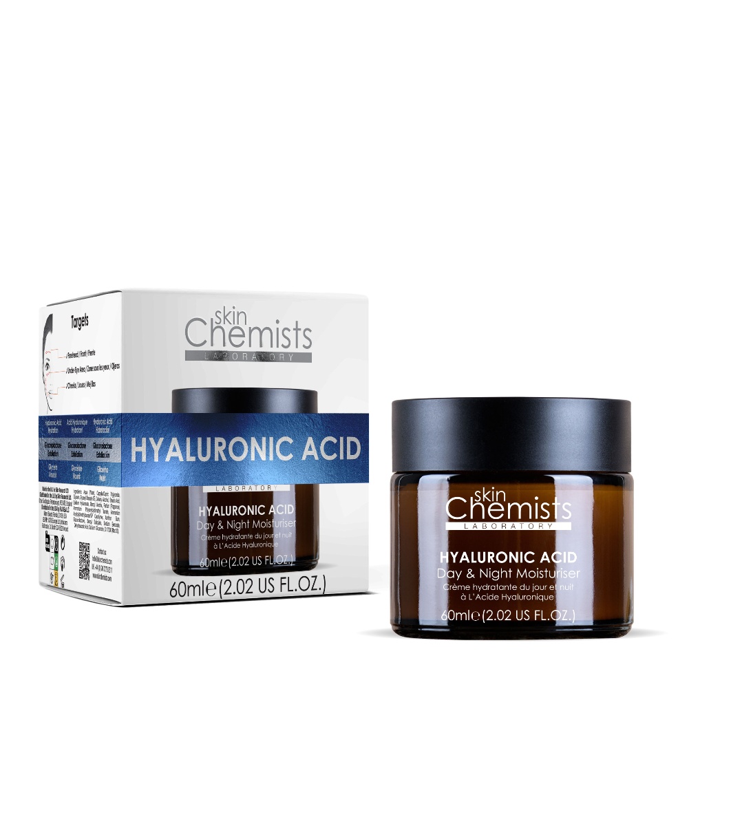 skinChemists Cremă hidratantă de zi și de noapte cu acid hialuronic 60 ml • Crema noastră hidratantă cu acid hialuronic de zi și de noapte își propune să stimuleze hidratarea, să reducă liniile de deshidratare și să hrănească pielea pentru un aspect tineresc și ferm.