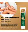 • Crema are un efect de încălzire, încălzind zona dureroasă, calmând-o și vindecând-o. Crește fluxul sanguin către articulații, îmbunătățind circulația sanguină generală. Produsul are un efect similar cu plasturii transdermici pentru corp. Poate fi utilizat în combinație cu aceștia sau în locul lor. Produsul poate fi benefic atât pentru persoanele care se mișcă activ și își solicită sistemul osos, cât și pentru cele care duc un stil de viață mai sedentar. Cu un stil de viață activ: - ajută articulațiile să facă față încărcăturii constante; - ameliorează senzația de disconfort. Cu un stil de viață sedentar: - are un efect de încălzire, care ajută la îmbunătățirea circulației sângelui în articulații. - contribuie la compensarea lipsei de mișcare