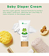 • Această cremă protejează pielea delicată din zona scutecului. O combinație de emolienți și oxid de zinc creează o barieră protectoare care protejează pielea bebelușului de iritațiile cauzate de urină, scaun și de frecarea și frecarea care pot apărea de la scutece, prevenind astfel iritațiile ulterioare.