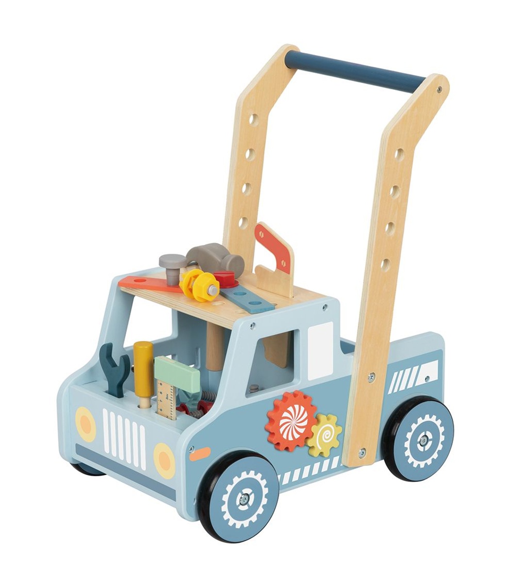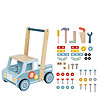 Setul include: 5 unelte de bază: ciocan, cheie, ferăstrău, șurubelniță și echer; 44 de piese de joacă: angrenaje, șuruburi, piulițe și elemente din lemn de înșurubat; mini labirint și roți de spin pentru distracție suplimentară; spațiu de depozitare în spatele căruciorului. Dezvoltarea abilităților: ajută la dezvoltarea coordonării, echilibrului și forței musculare; stimulează jocul creativ și rezolvarea problemelor; încurajează dexteritatea și gândirea logică;