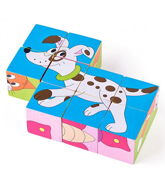 Setul conține 9 cuburi din lemn cu poze, cu ajutorul cărora copiii își dezvoltă gândirea logică, observația și creativitatea. Copiii pot realiza imagini cu animale cu forme diferite și nestandardizate.