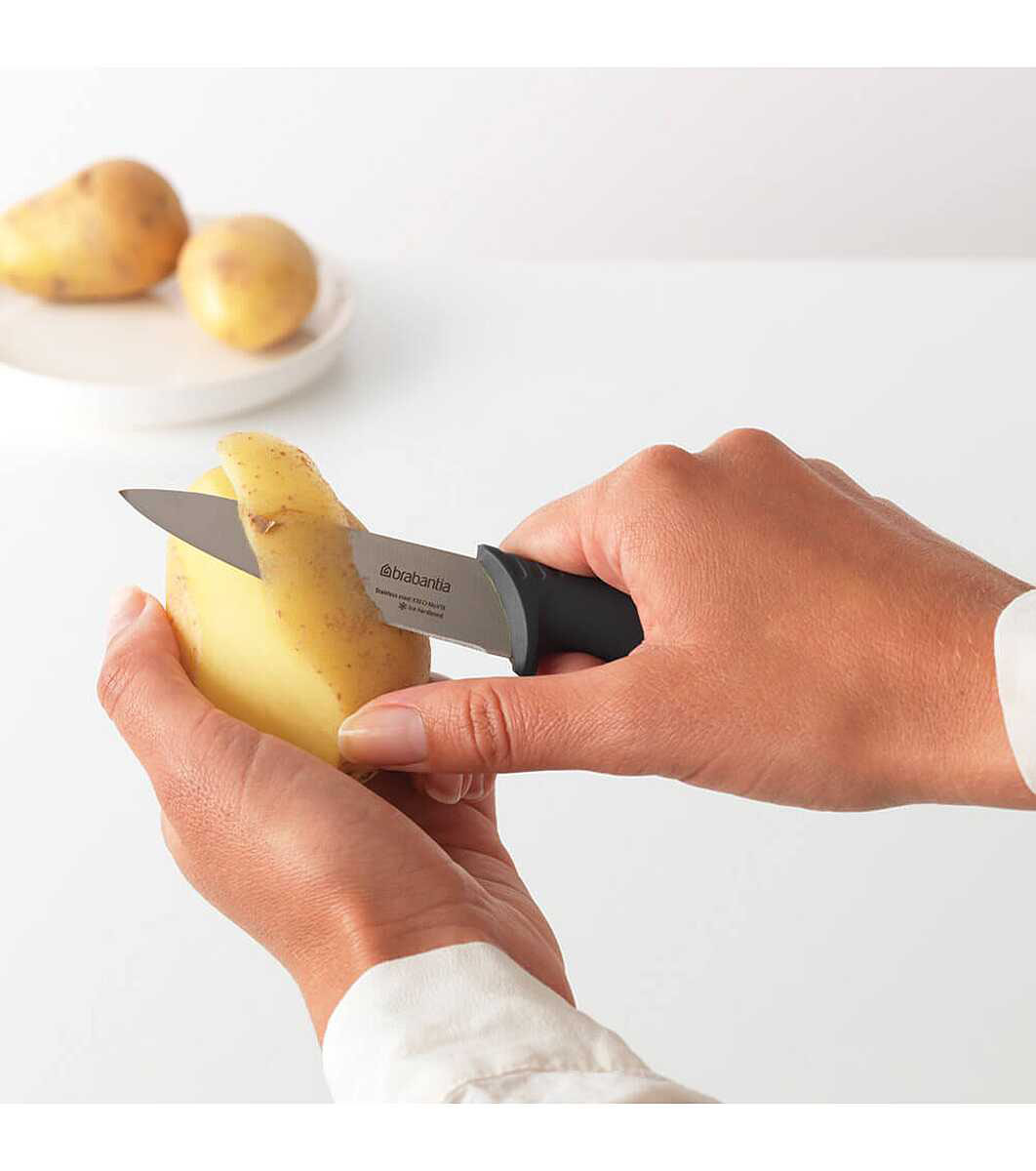 Cuțitul este ușor de lucrat, deoarece este echilibrat și are un mâner proiectat ergonomic Ideal pentru curățarea și tăierea fructelor și legumelor. Cu toate acestea, lama sa mică și îngustă îl face și un ajutor versatil în bucătărie și pe masă pentru tăierea baghetelor, cârnaților, brânzeturilor, a untului și a tot felul de alte sarcini mici de bucătărie.