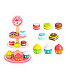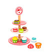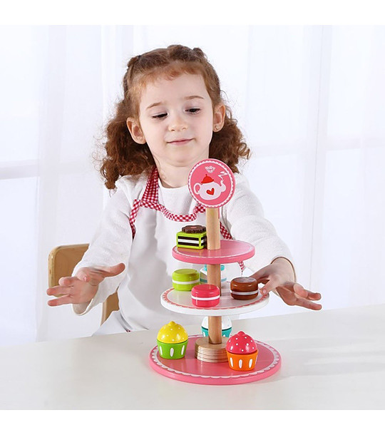 Aceasta este o tavă cu trei niveluri cu cupcakes din lemn cu care copilul să se joace. Unele dintre ele au posibilitatea de a tăia, astfel încât copilul va putea să învețe lucruri noi și să se distreze.