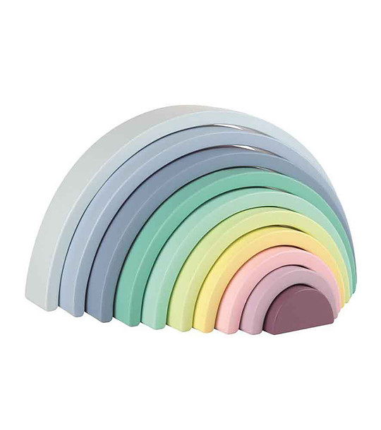 Oferă-i copilului tău șansa de a-și comanda curcubeul. Copilul îl va putea aranja în funcție de culorile și dimensiunile pieselor, iar din aceste părți își poate crea propriile figuri și crea.