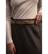 Curea de damă cu design curat și cataramă metalică.