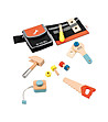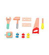Setul include: un ciocan, o cheie, un ferăstrău, o bandă de măsurare, o șurubelniță, trei șuruburi, trei piulițe, două șaibe cu găuri.