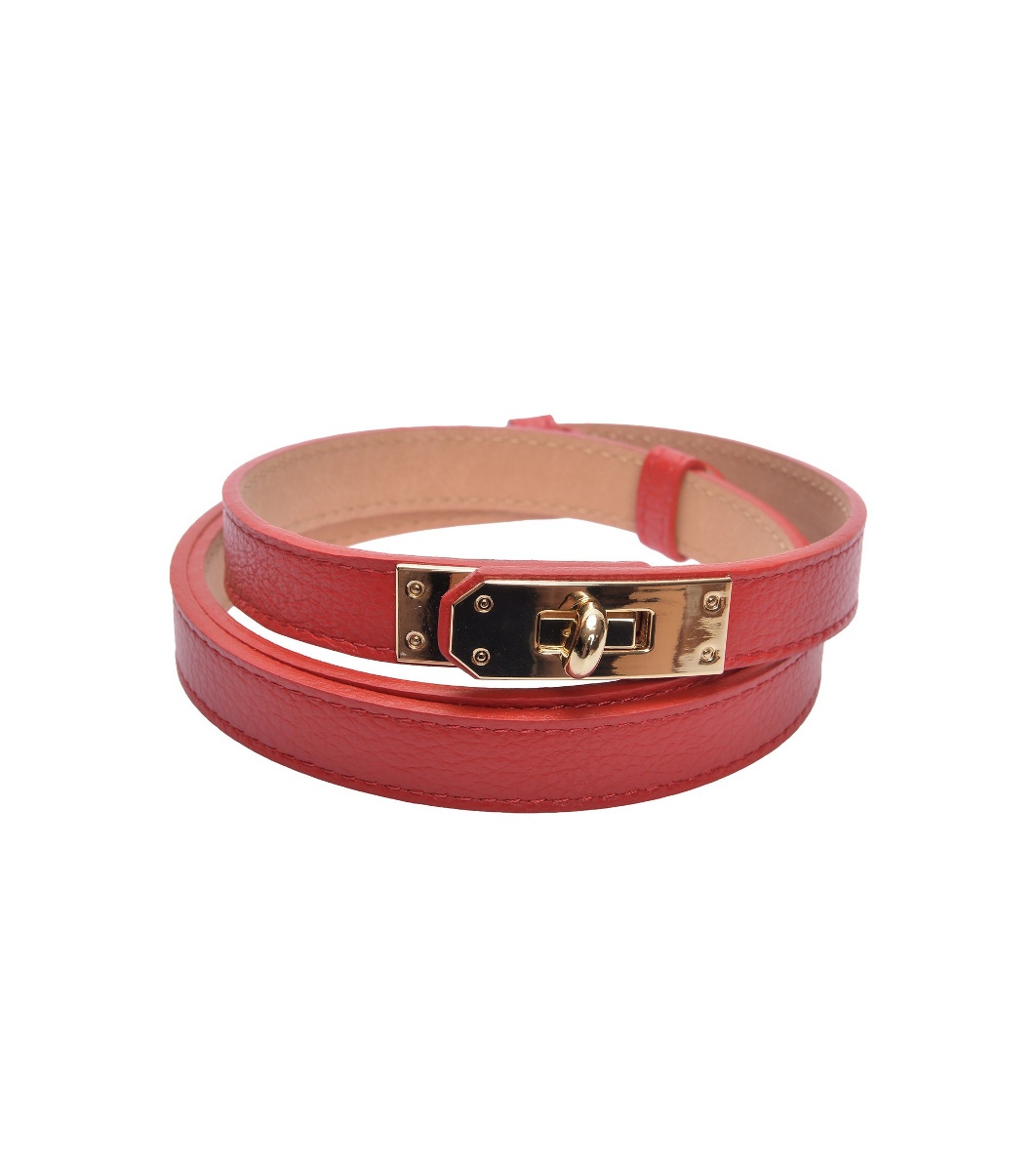Isabella Rhea Curea roșie cu cataramă metalică ROSSO Curea subțire texturată din piele naturală.