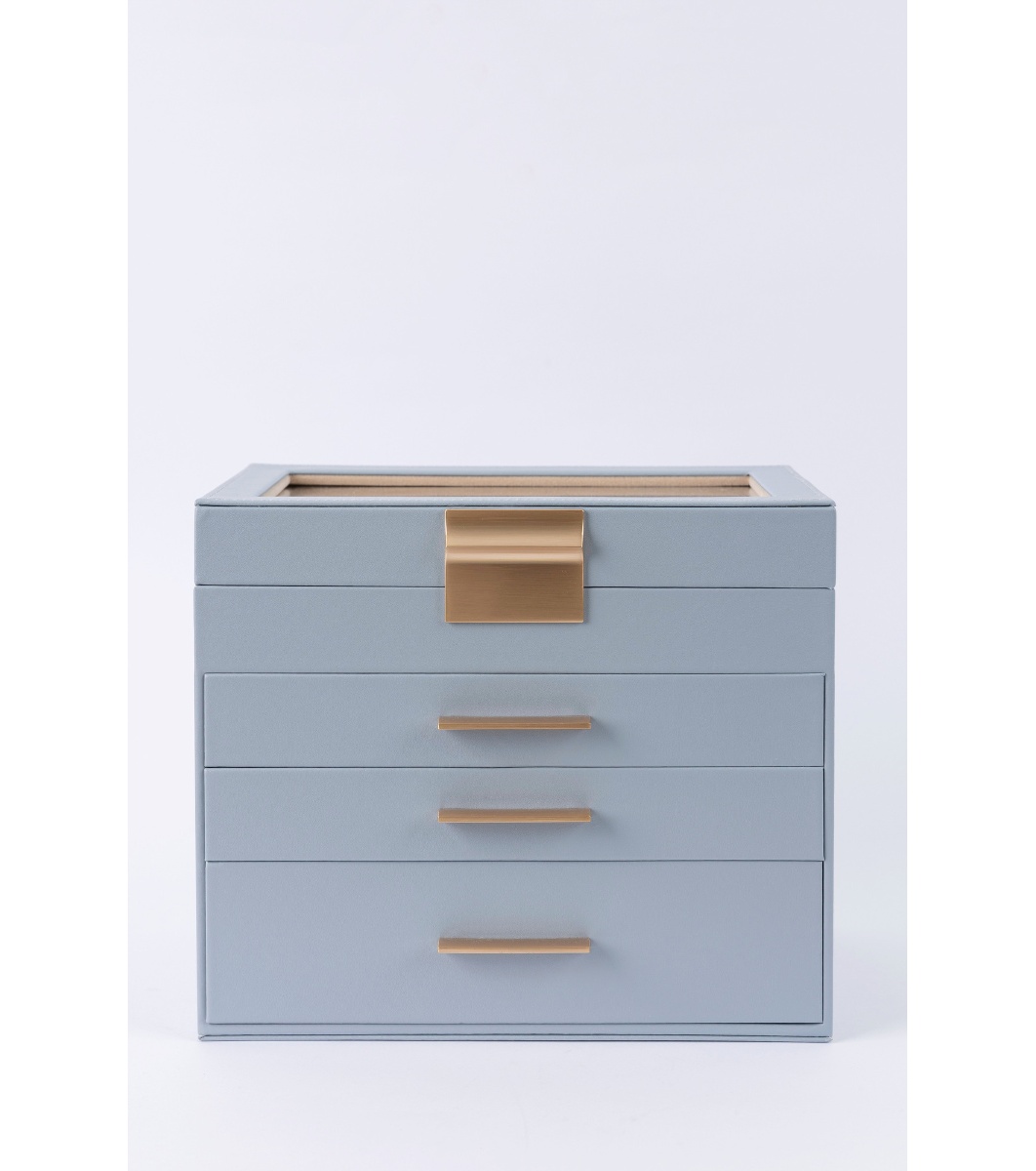Somm Cutie de bijuterii albastră cu 4 niveluri Cutie de bijuterii cu patru niveluri