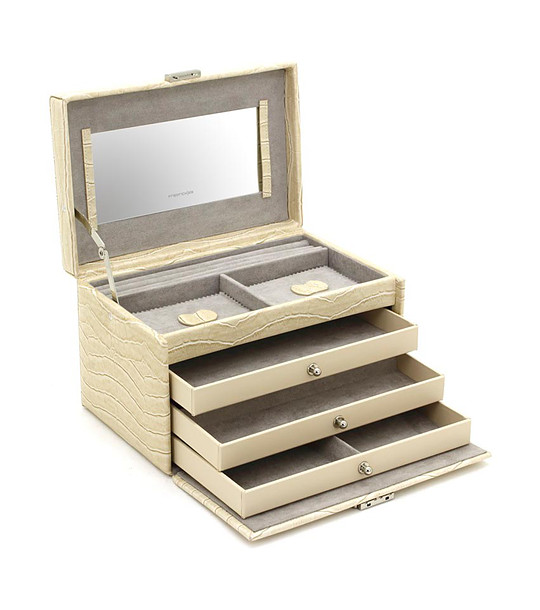 Nivel superior cu compartimente pentru inele și două compartimente pătrate pentru bijuterii