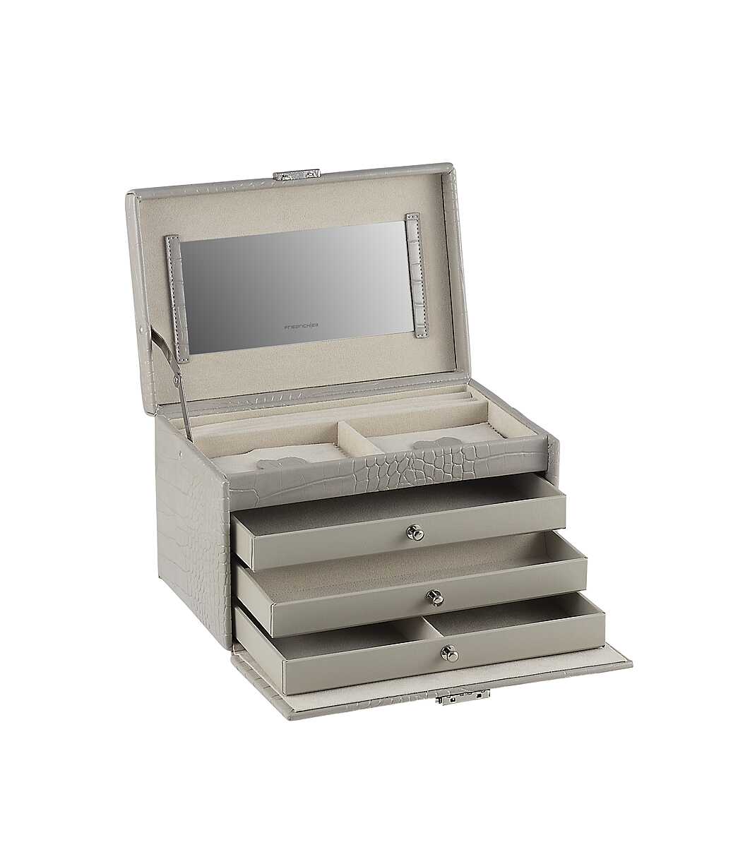 Friedrich|23 Cutie de bijuterii cu 4 niveluri de culoare gri cu caiman în relief croco Capac cu oglindă