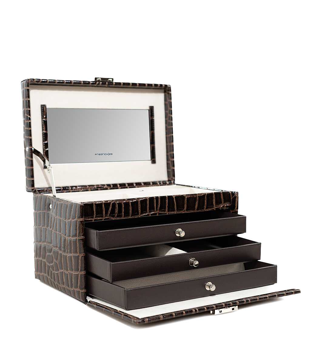 Friedrich|23 Cutie de bijuterii cu 4 niveluri, maro închis, cu imprimare croco Jolie Capac cu oglindă