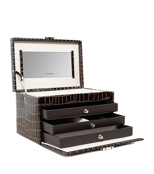 Cutie de bijuterii cu 4 niveluri, maro închis, cu imprimare croco Jolie