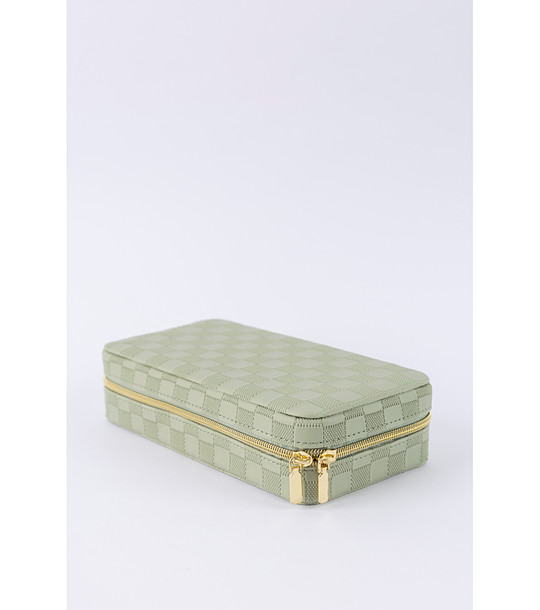 Cutie de bijuterii dreptunghiulară verde deschis cu oglindă