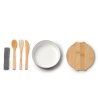 Cutie de prânz din metal alb cu capac și tacâmuri din bambus EVELIN