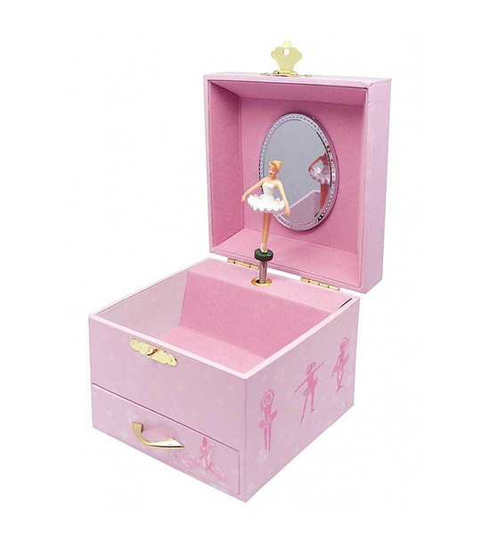 Deschide capacul și rotește cheia - vei auzi o melodie fermecătoare și vei vedea figurina balerinei care se învârte în ritmul muzicii. Cutia are un mic sertar.