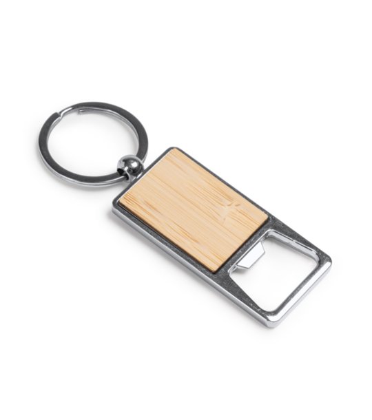 Deschizător de brelocuri din bambus și metal plisat cromat.