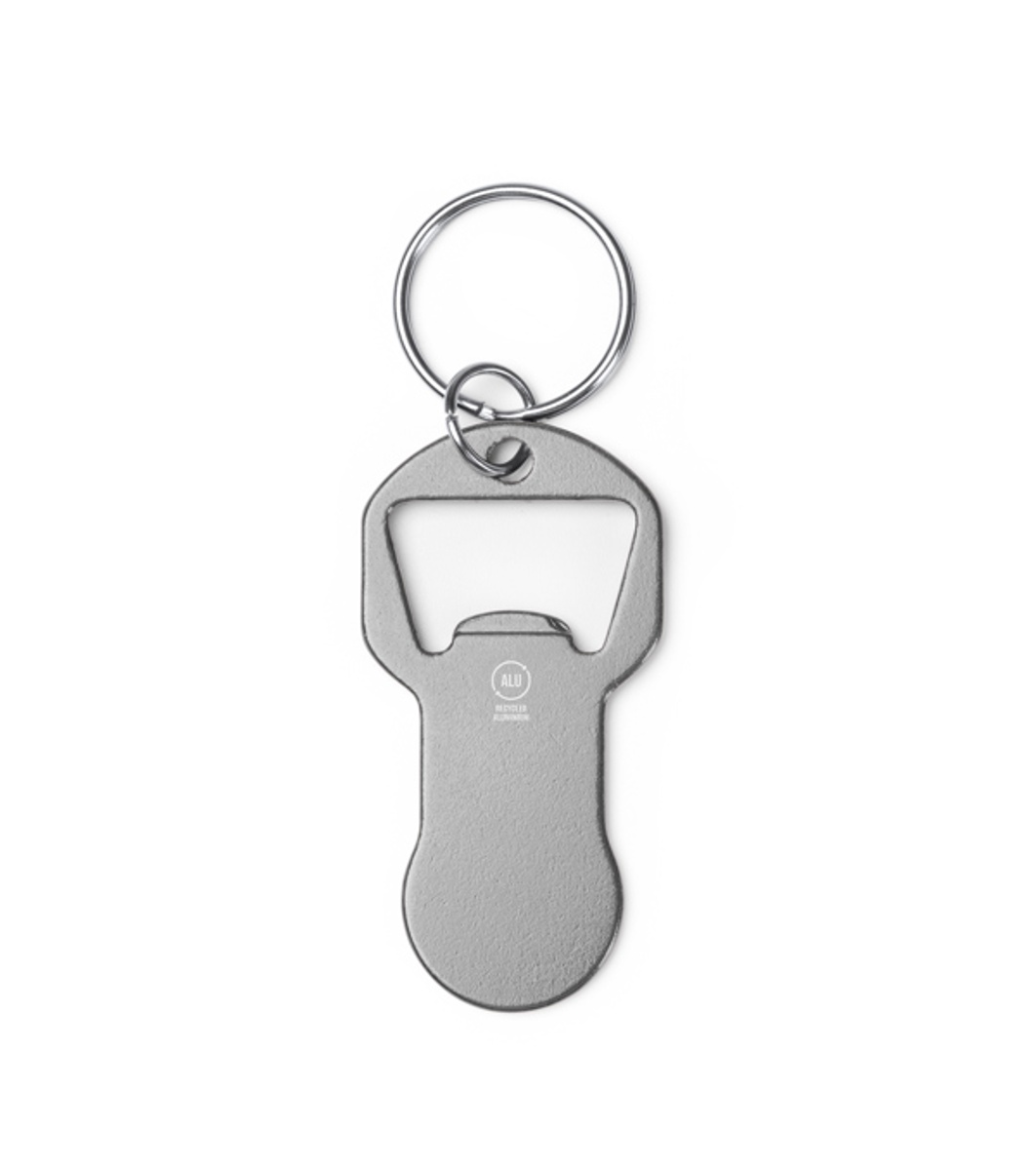 Deschizător de sticle din aluminiu reciclat cu o monedă pentru coșul de cumpărături.