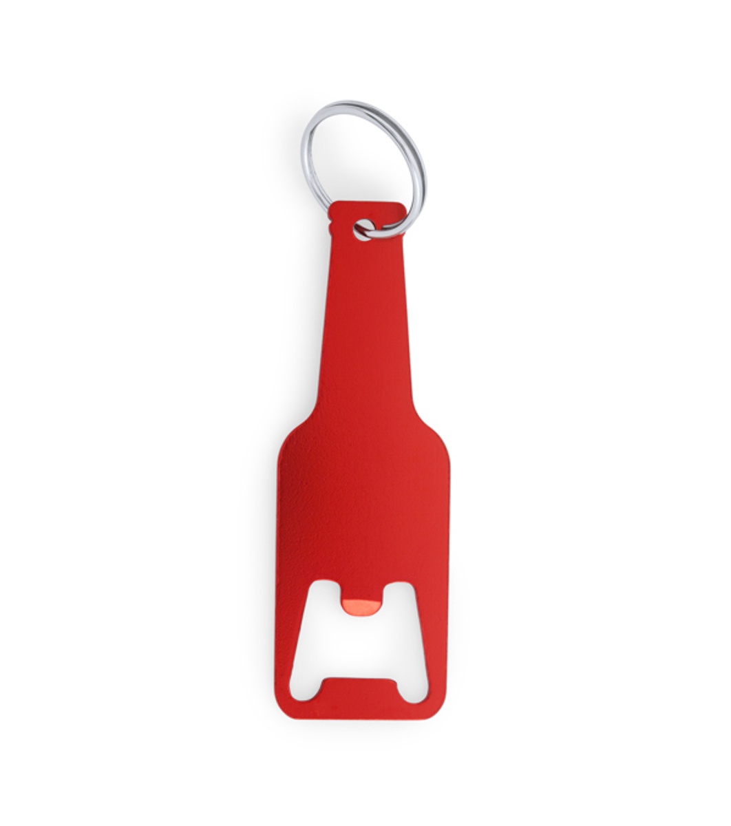 Inel de chei din aluminiu cu deschizător de sticle în design de sticlă.