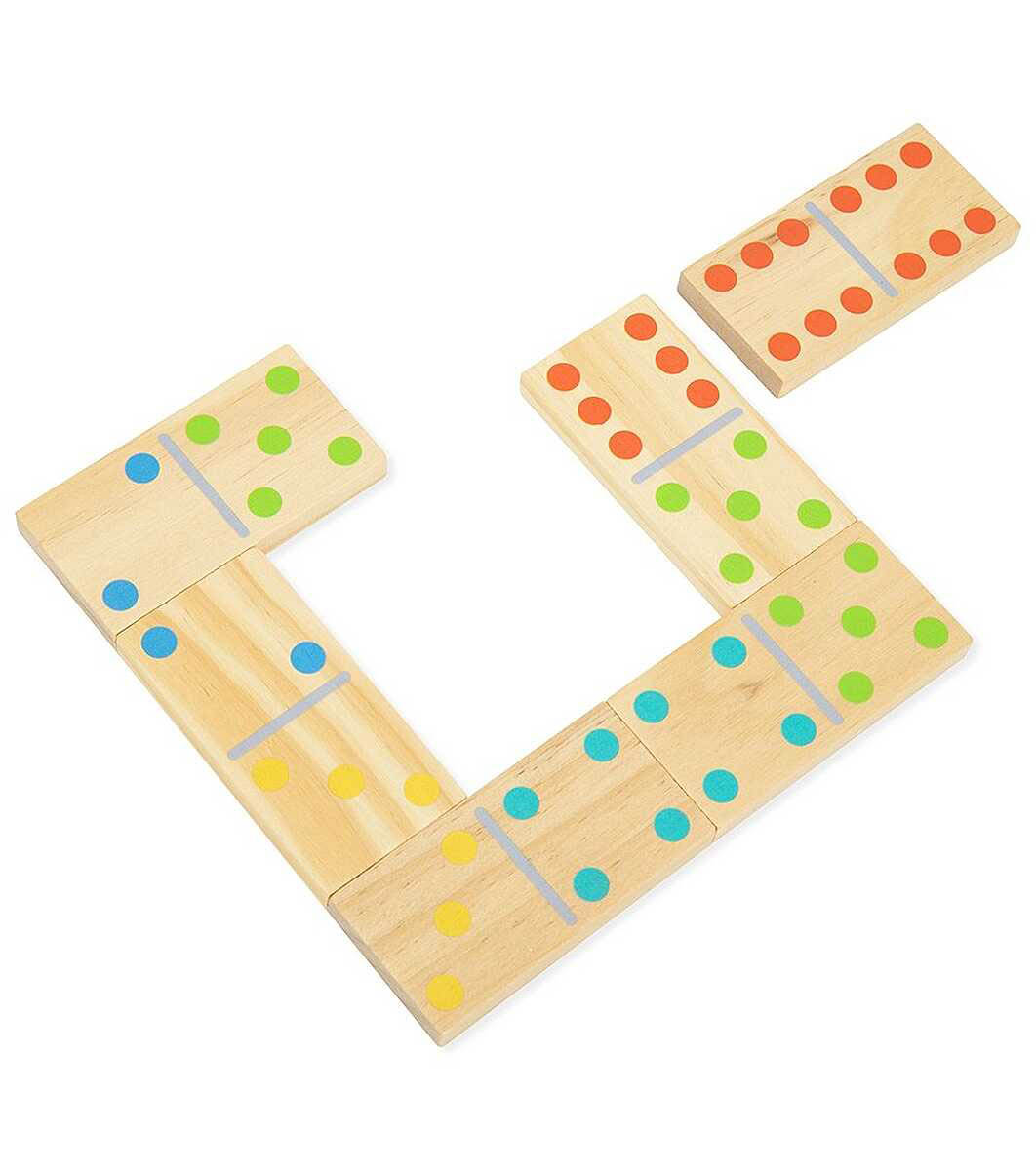 Fiecare piesă de domino are numere reprezentate cu numărul corespunzător de puncte și colorate într-o culoare diferită corespunzătoare numărului.  În acest fel, copilul învață abilități de bază de matematică și conceptul de secvență și asociere a culorilor.